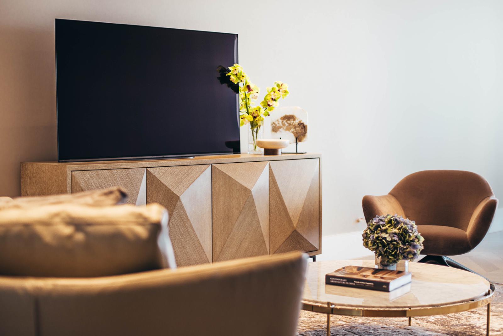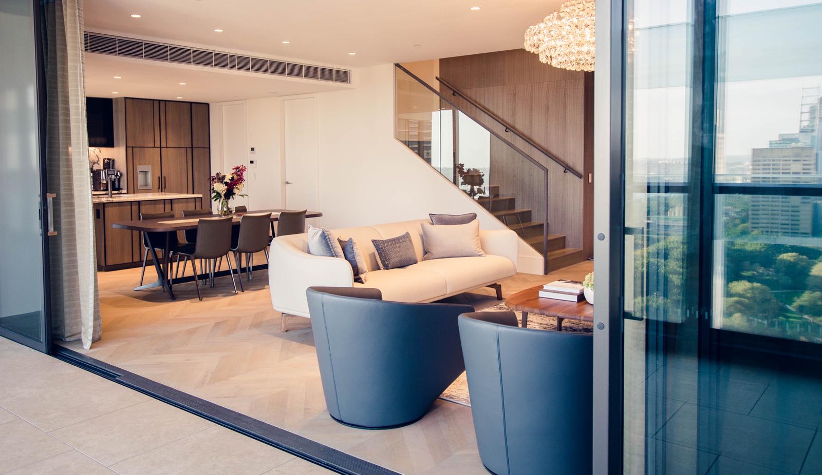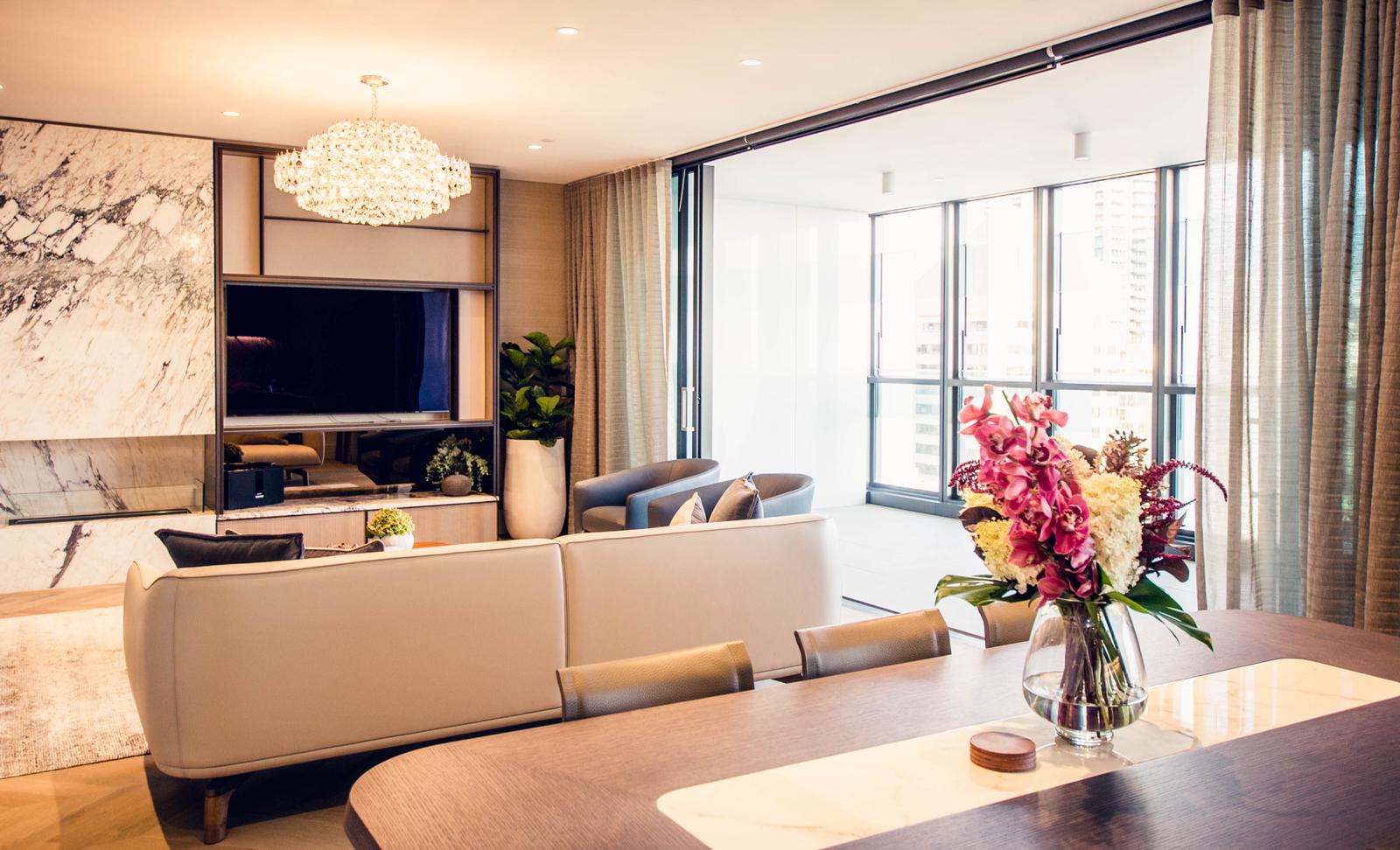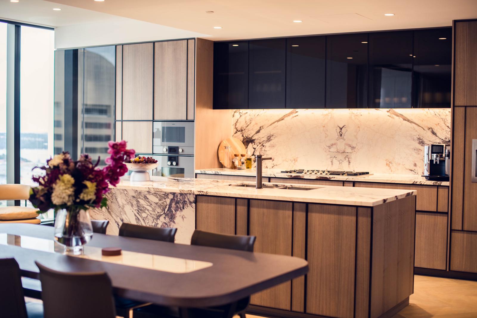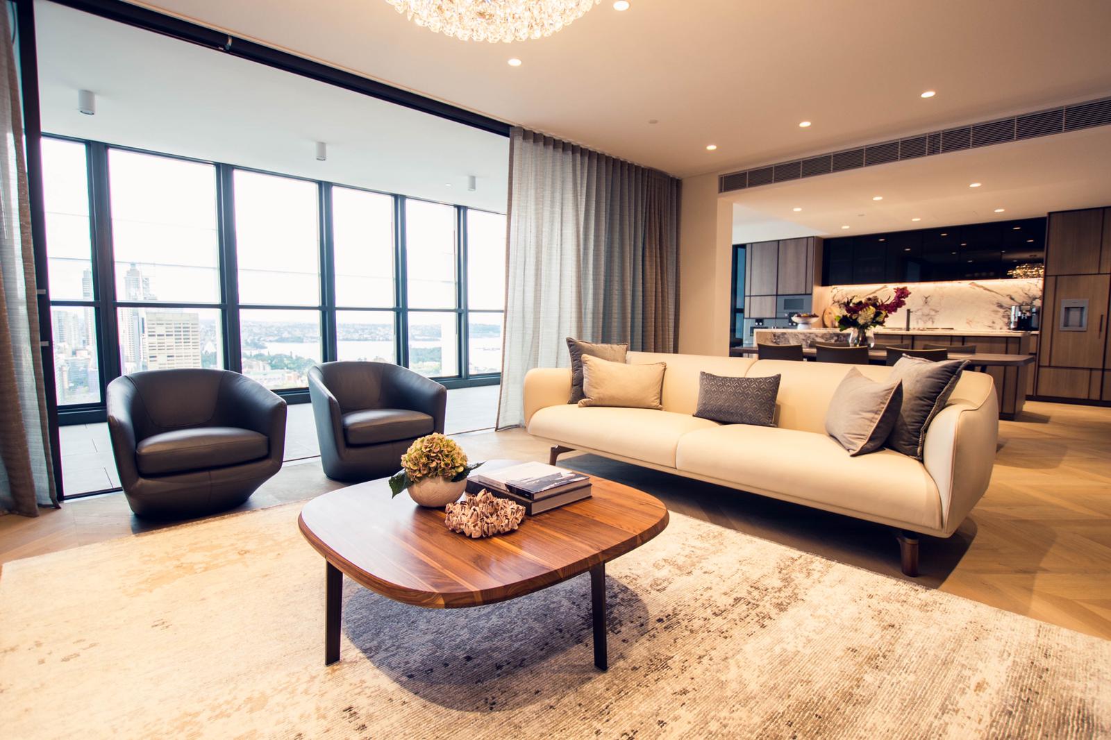 This project represents a pinnacle of luxury, meticulously crafted within a recently completed high-rise in the heart of Sydney's CBD. Perched on the 36th floor, the apartment offers sweeping views of the city skyline.