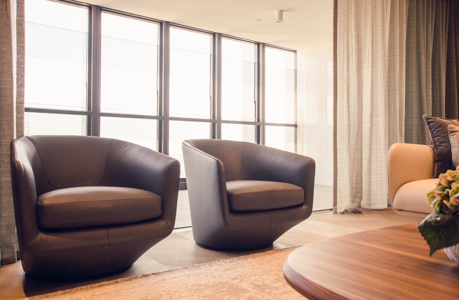The residence spans 150 square meters ont he entry level and 300 square meters on the upper floor, accessible via a private internal lift. Designed and executed by Encorp in close collaboration with the owner, who also served as the Interior Designer, the project epitomizes bespoke architectural elegance tailored to the client’s vision.